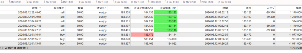 というのも、昨日からトレードしていたのですがマイナス後、日をまたいで3月12日からポジションをもっており1日たってもプラマイゼロに近い状況でした。